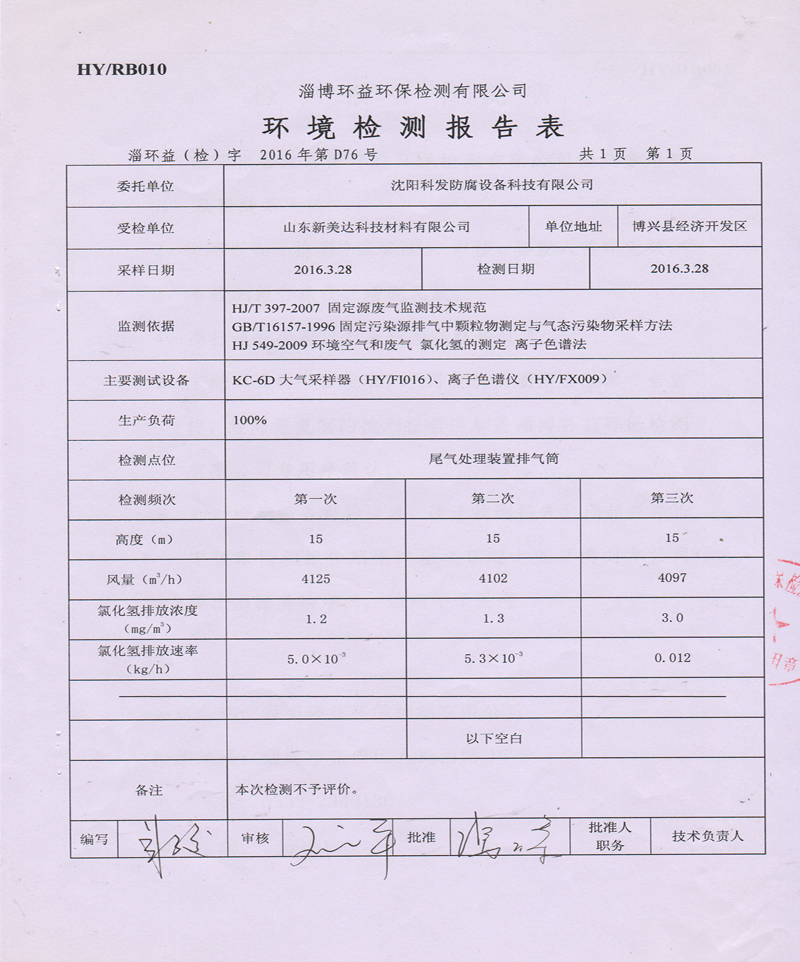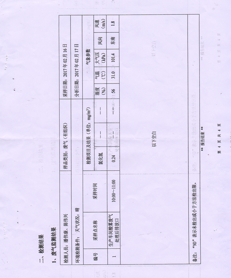 我們為每位客戶提供酸霧設備的專業氣體檢測,每個客戶的檢測結果都大大低于國家標準和地方標準。