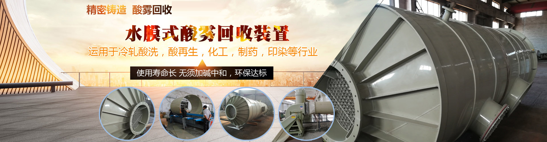 沈陽科發防腐設備技術有限公司是酸霧回收裝置、廢酸回收裝置等產品專業生產加工的公司,擁有完整、科學的質量管理體系。主營國家專利產品水膜式酸霧回收設備,目前,經過全國80多家酸洗廠使用證明,運行成本底,操作簡便。經過國家有關部門檢測,煙囪出口HCL排放濃度小于國家現行標準,還對酸霧中的HCL進行回收再利用,即節約了生產成本,又極大的降低了維修保養費用。